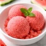 This watermelon sorbet only uses 1 ingredient and it is a refreshing and fruity treat made with just some cut up watermelon. Youโll be so amazed at how creamy watermelon turns out in the Ninja Creami!