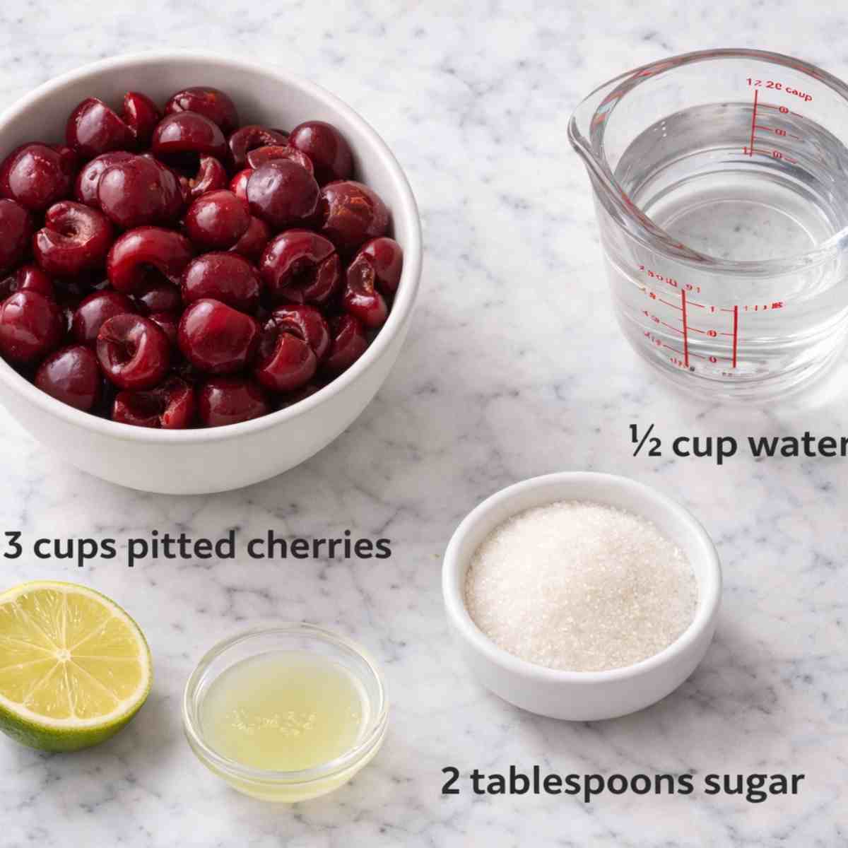 - Add the pitted cherries, water, sugar, and lime to a blender and puree.