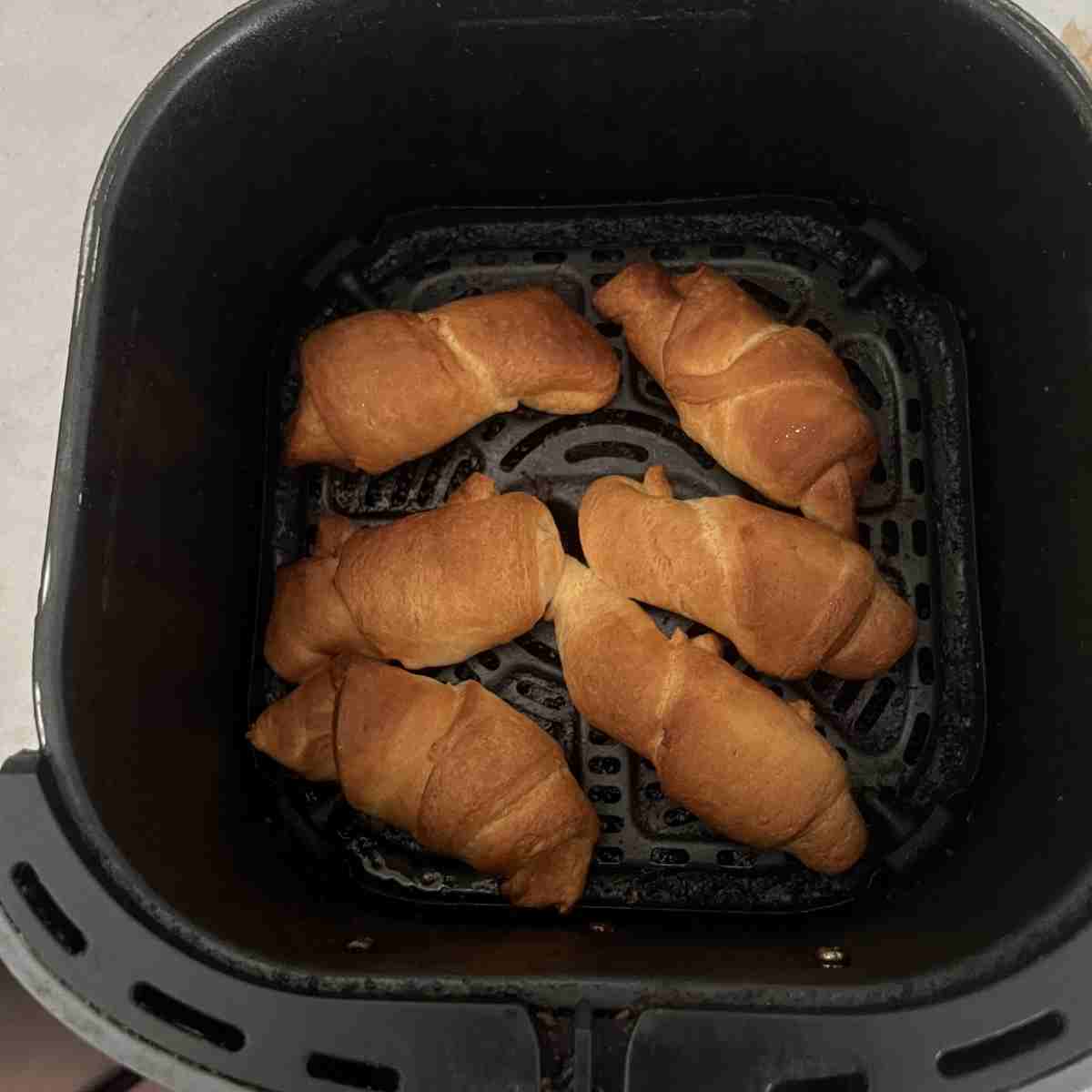 Place the crescent rolls in a single layer in the basket, leaving space between each one.Air fry at 350°F for 6 to 8 minutes, or until golden brown.
