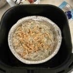 Everything bakes up beautifully in a small tinfoil container that fits right in your air fryer. The result is a warm, golden-topped casserole that feels homemade and comforting without all the effort. It comes together in less than 15 minutes, making it an ideal side dish for a quick dinner, holiday meal, or cozy night in.