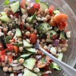 What I love about this version is that it has a Mediterranean-inspired twist with olive oil, lemon, fresh veggies, and a little feta. It reminds me a lot of cowboy caviar, but lighter and more refreshing.