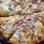 If you are looking for an easy, budget-friendly dinner that still feels fun and satisfying, this ham and pineapple pizza is a great option! It is made with simple ingredients, comes together quickly, and is perfect for using up leftover ham. This version uses store-bought pizza dough, which makes it even easier to prepare on a busy night.