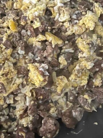 These No Bake Golden Graham S'mores Bars are made with Golden Graham Cereal instead of your typical Rice Krispie Cereal. Golden Graham cereal really does a good job at mimicking the Graham Crackers that are typically found in s'mores. Do NOT skip on this part. Then chocolate gets melted into the marshmallows to make an easy no-bake cereal bar.